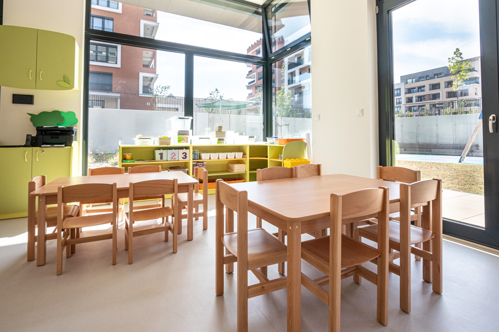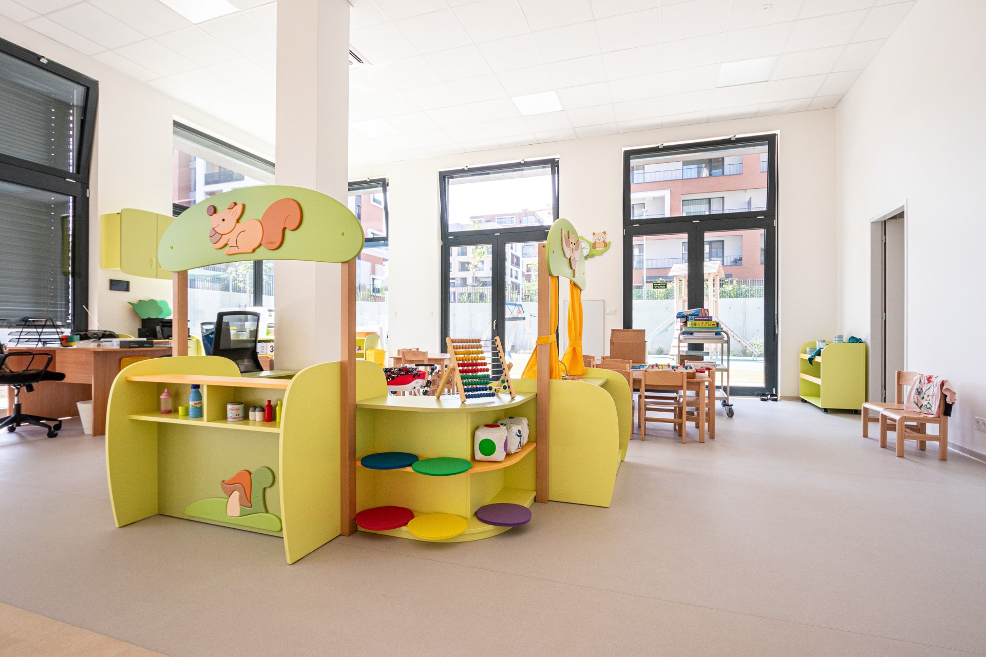 V nové moderní budově z roku 2013 jsou k dispozici pro děti tři třídy, dvě z nich jsou bezbariérové a školní výdejna s jídelnou. Obě budovy jsou propojeny spojovacím krčkem pro jednoduché přecházení z budovy do budovy. Krček je využíván také jako výstavní prostor pro práce dětí keramického kroužku i paní učitelek.