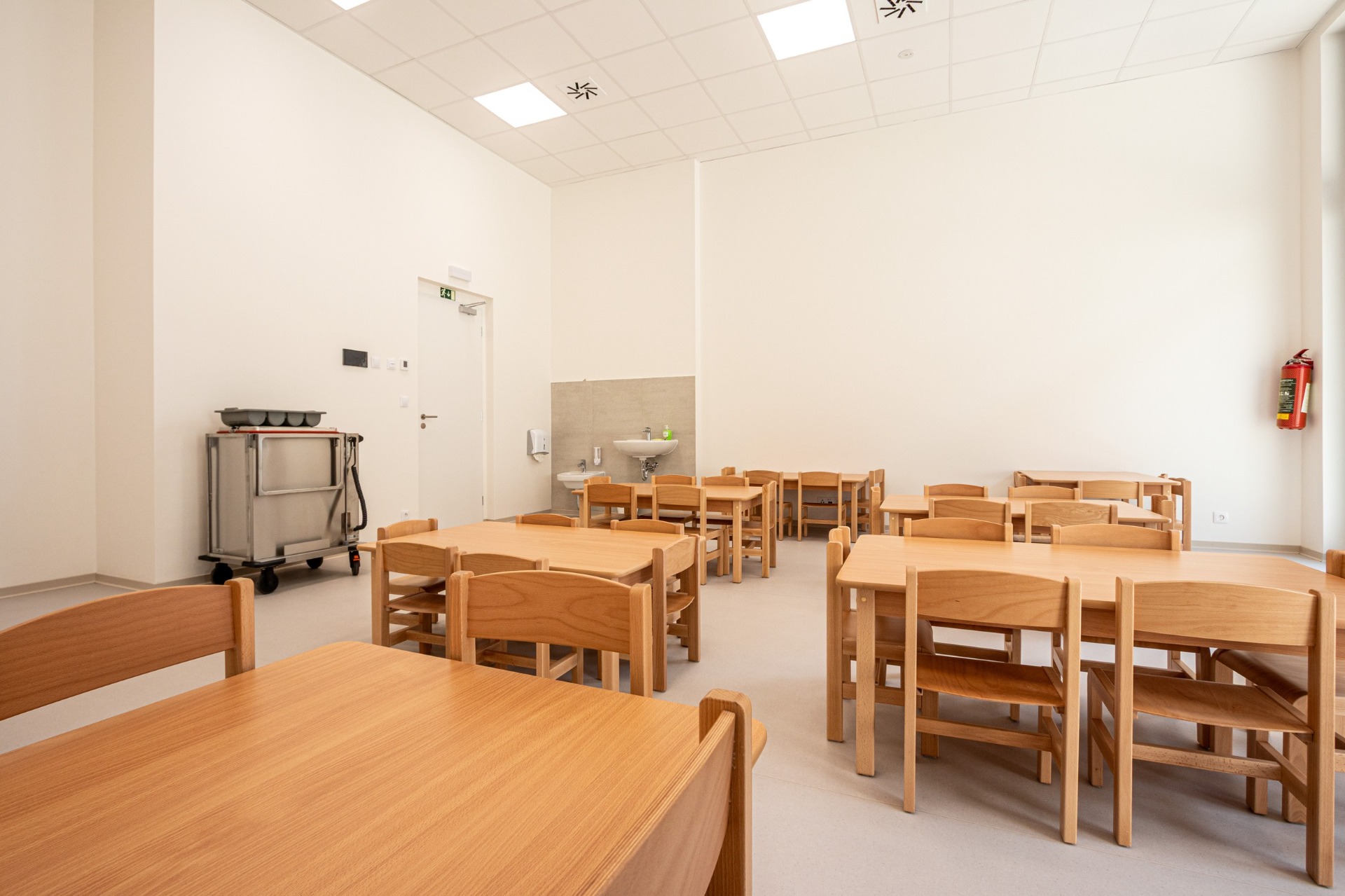 umístěny dvě školní třídy, velká tělocvična - herna
